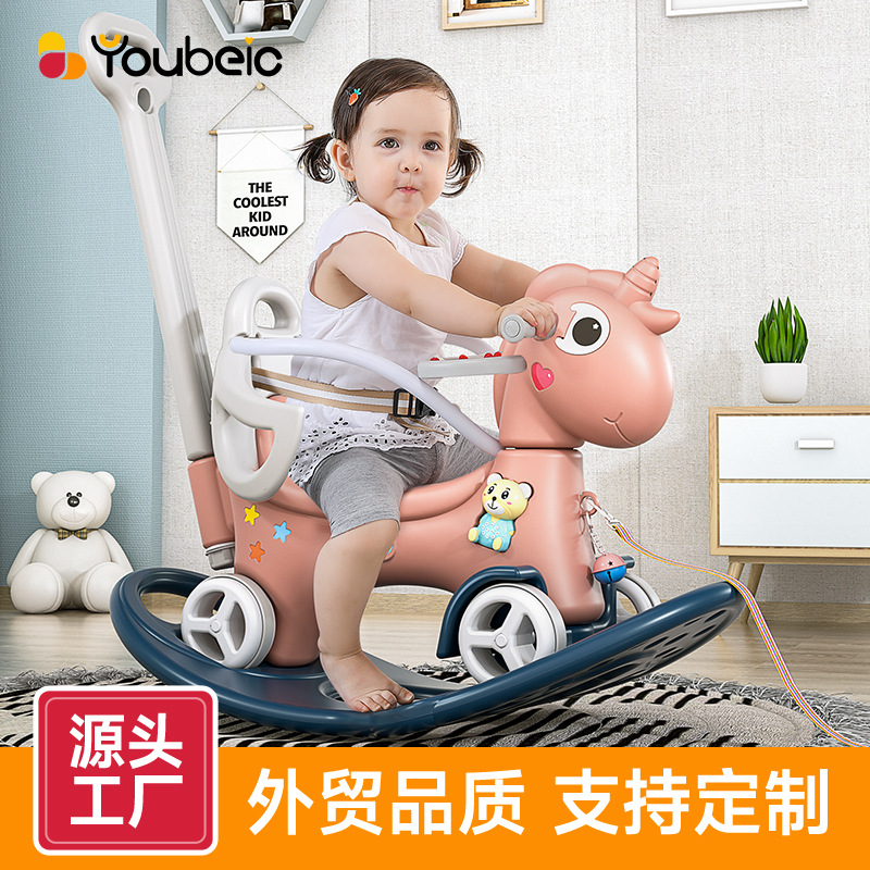 天馬hdpeプラスチックトロイの木馬子供が馬の多機能玩具二合一馬頭プッシュロッドを振ってコントロールできる