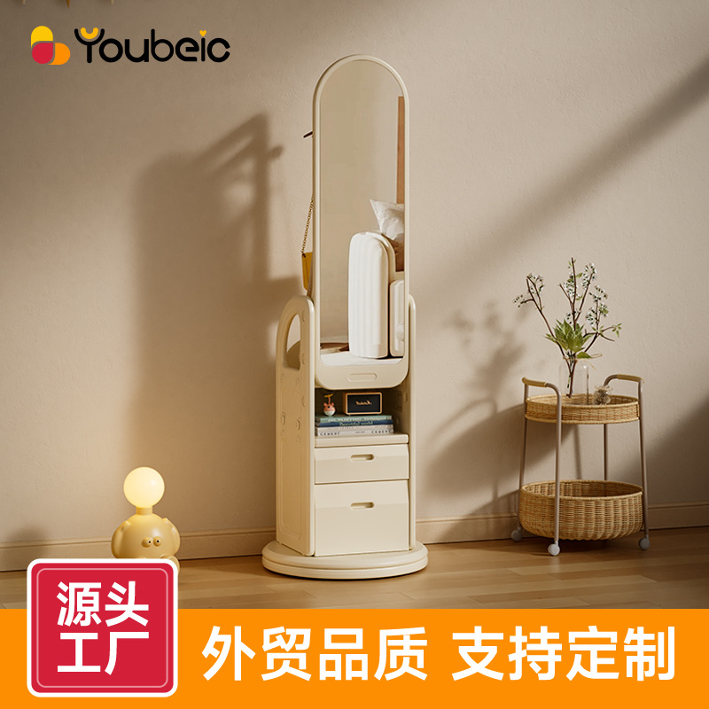 多機能シンプルな服装鏡家庭用回転可能な移動寝室の試着鏡ハンガー付き引き出し収納