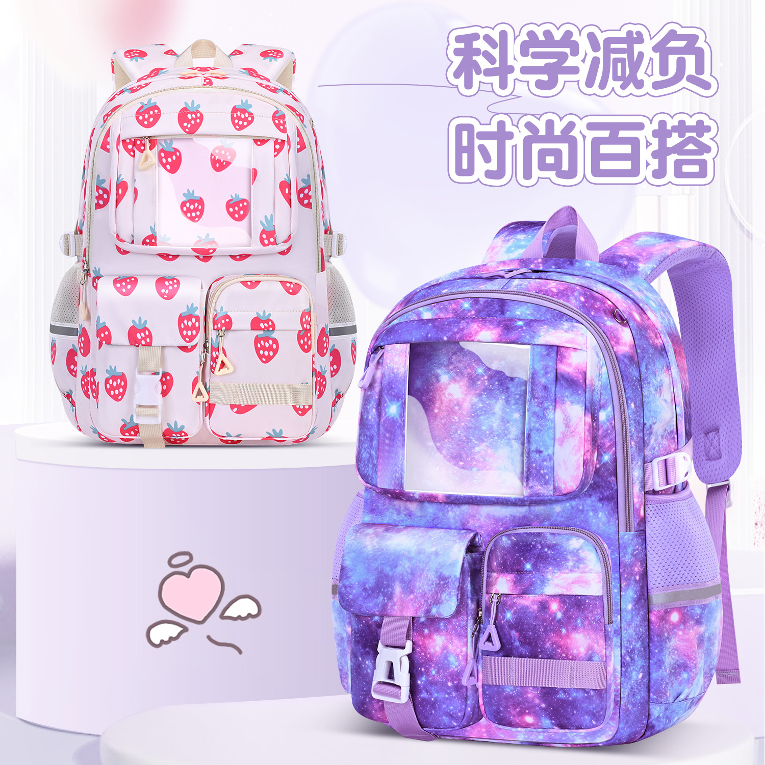 新商品の宇宙カバンが可愛いです。学生カバンは子供用の軽いマイナスのリュックサックです。