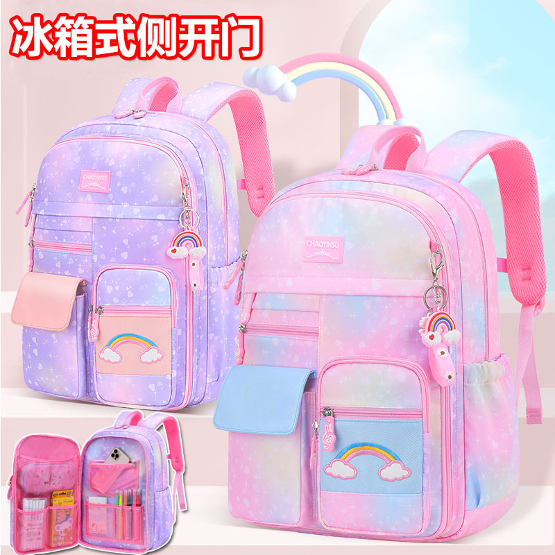 新しい小学生グラデーションランドセル冷蔵庫ドア測定かわいいプリンセス大容量軽量女の子バックパック