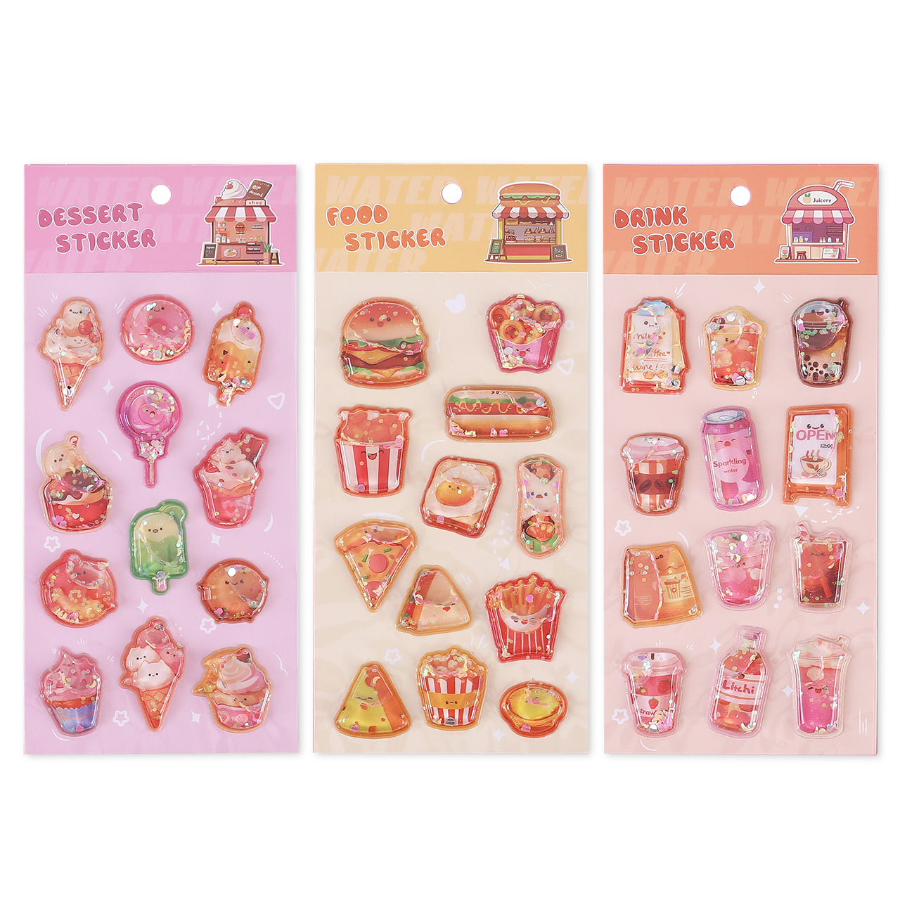 食品 3D 漫画立体シェイクウォーターステッカー水充填シェイクスパンコールステッカーハンドブックミルクティーアイスクリーム装飾ステッカー