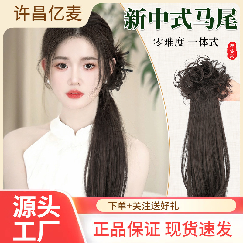 ウィッグポニーテール新しい中国風クリップポニーテールナチュラル人工毛結び古代スタイル漢服チャイナドレス高温シルクポニーテール