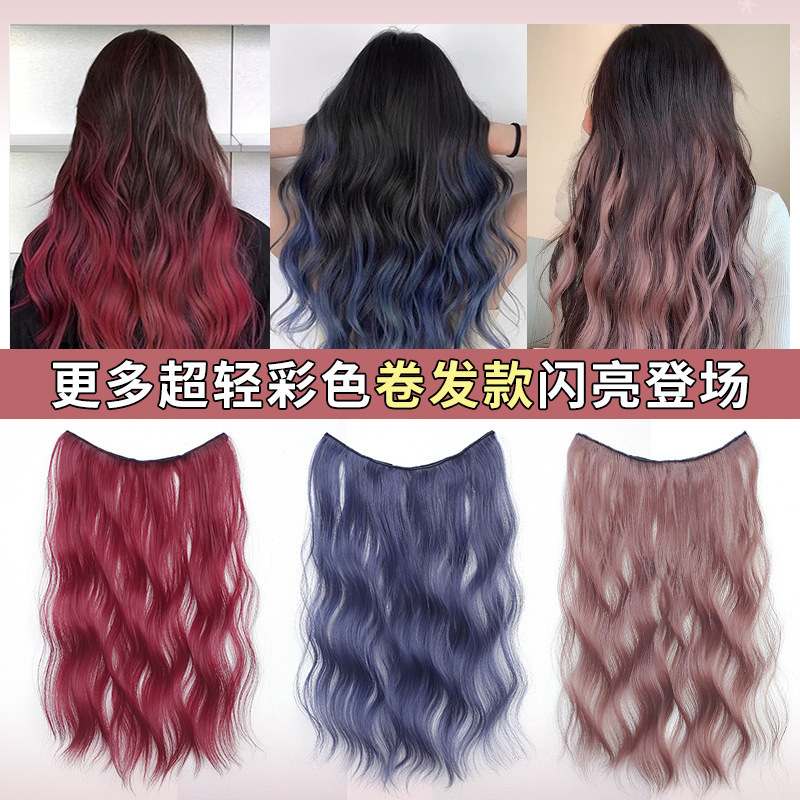 ふわふわで髪のボリュームを増やすワンピースハイライトウィッグ、水の波紋巻き毛、跡が残らない目に見えないカラーヘアエクステンション、耳掛け染め