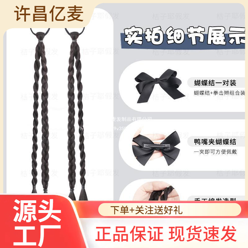 かつらのお下げの女性の双馬尾のギャルの蝶結びの鶏の毛ははねの頭のボクシングのお下げのドーパミンのかつらを挟みます。