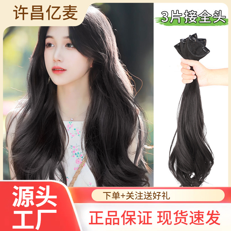 薄いタイプのかつらの巻き髪の三枚式のふわふわした増発量の見えない髪の切れは馬尾のかつらの女性の長髪を刺すことができます。
