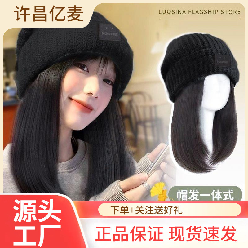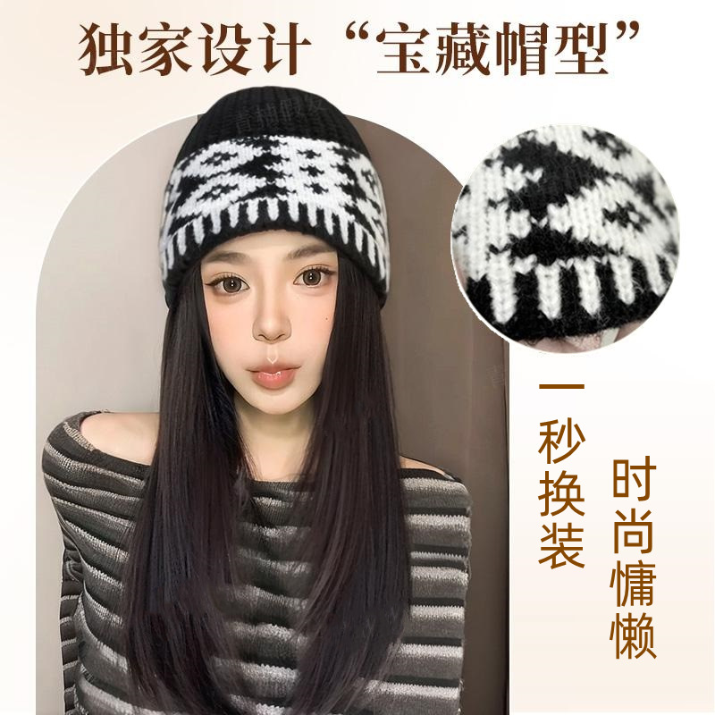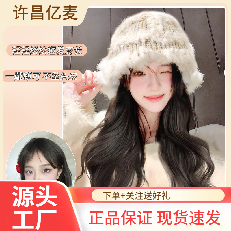 帽子のかつらの一体の女性のタイプの冬の新型の毛糸のメリヤスのかつらの女性の鎖骨の髪のシミュレーションの髪の全頭カバーの億麦