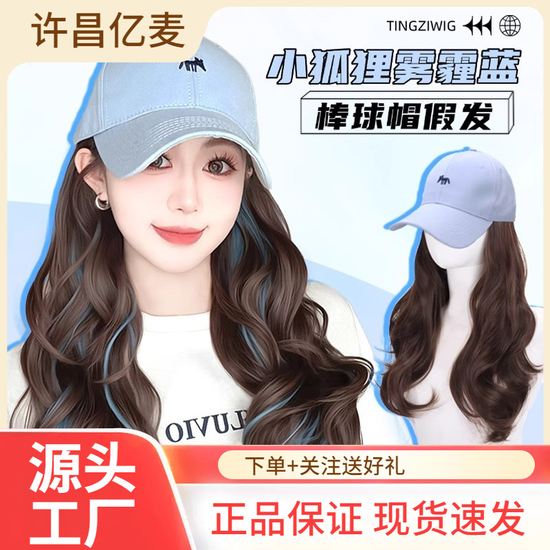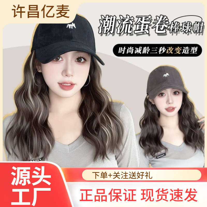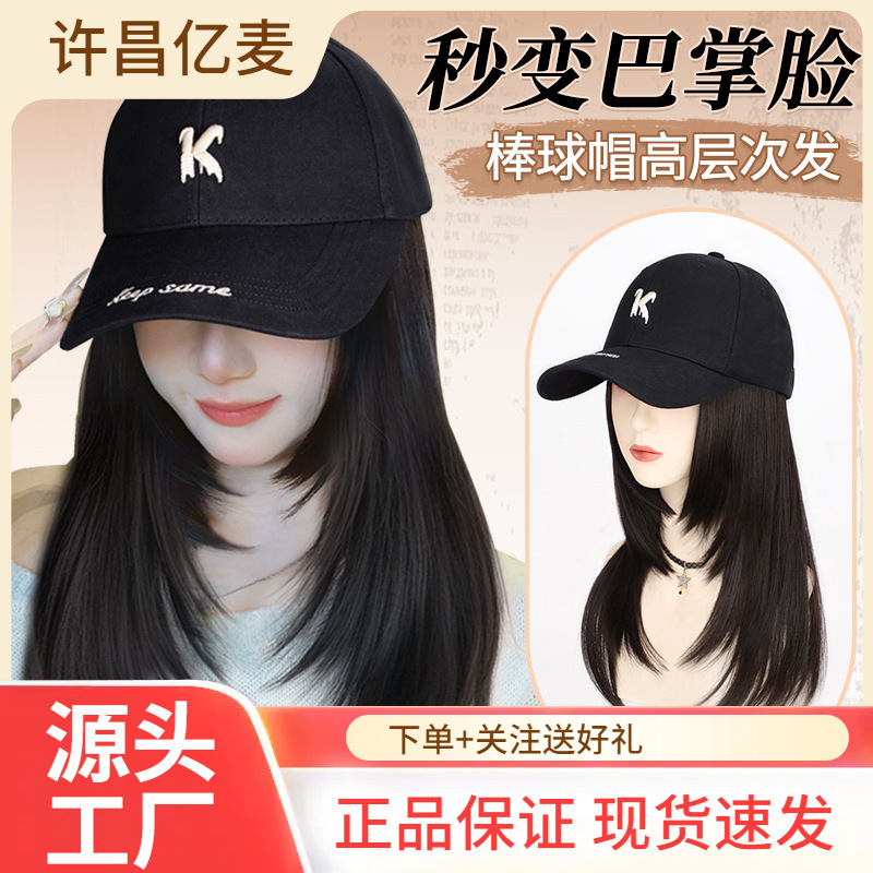 ファッションの野球の帽子のかつらの一体の新型のシミュレーションの髪の毛の高レベルの長い髪の秒は平手打ちの顔のファッションに変わります。