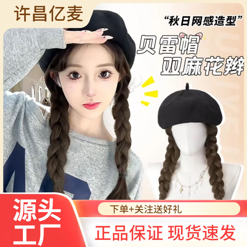 シンプルなベレーの帽子のかつらの一体式のシミュレーションの髪の糸のかわいい甘い韓国系の風は顔の小さい長いタイプのかつらを現します。