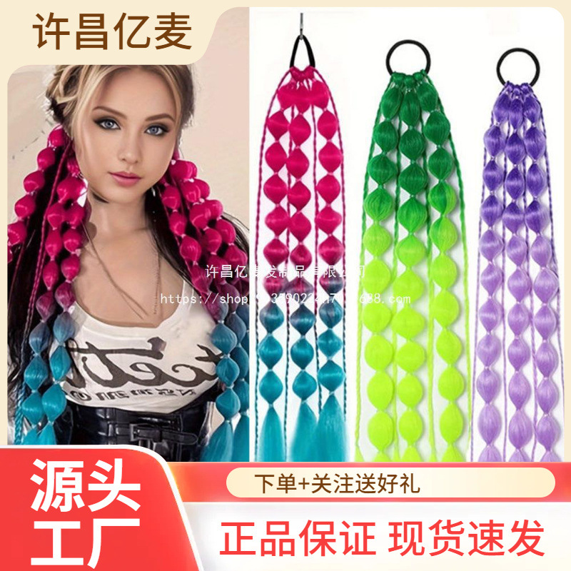 Yimai かつら女の子ツイスト三つ編みポニーテールランタンバブルステージドラマ新しい中国風ポニーテールインターネット有名人三つ編み