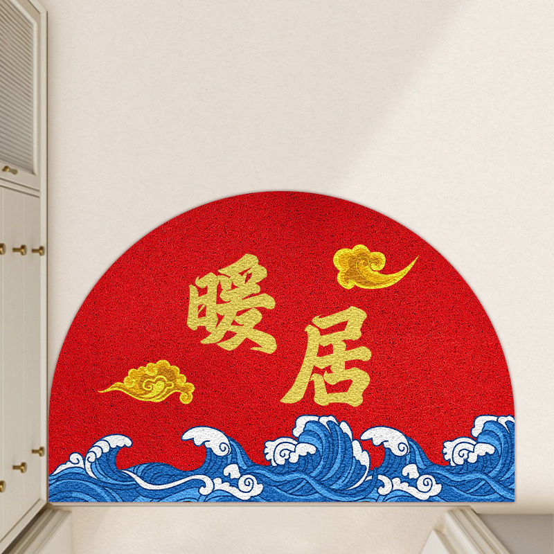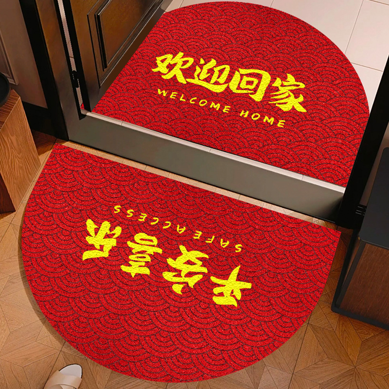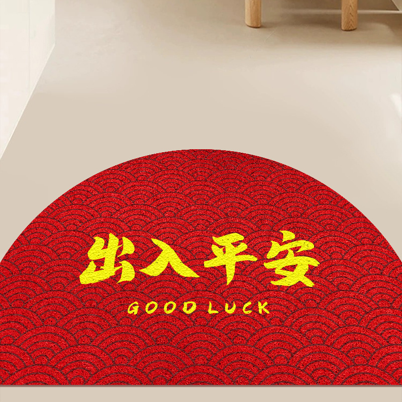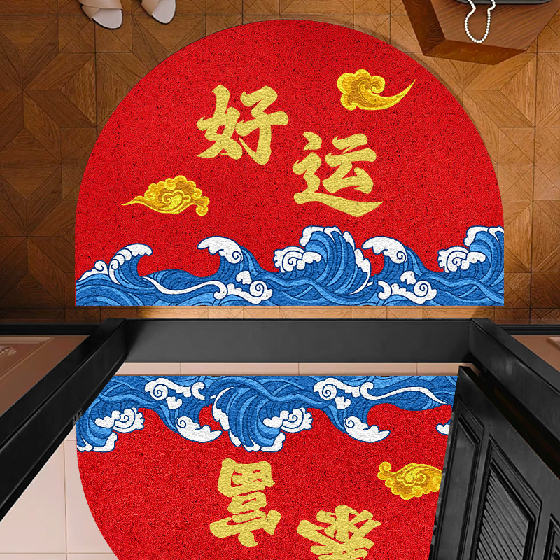 家に入って家に入ると、幸運の半円形家庭用の赤いお祝いの糸の輪の足のマットが土をこすって砂を剃る滑り止めのドアマットがついている