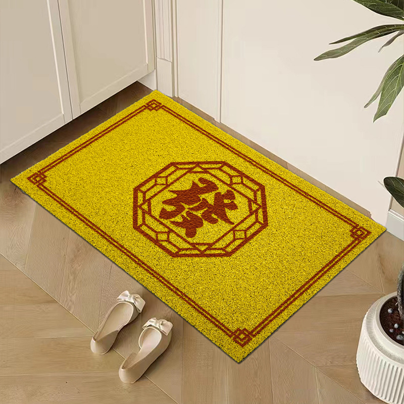 黄色の入口のドアのマットの入り口の足のマットの家庭用滑り止めの糸の輪の外の風水の日は闘金のじゅうたんに入ります。