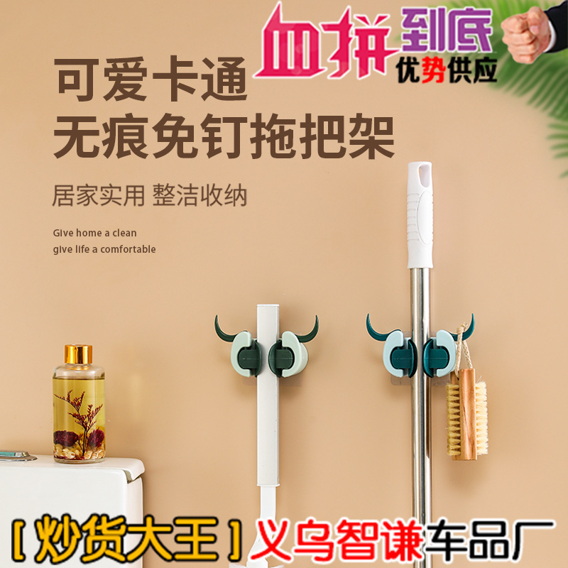 バスルームキッチン牛ヘッドモップラックビスコースモップラックモップフック整理収納モップ収納ラック
