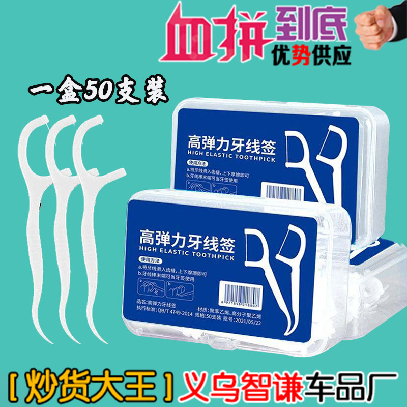 ポータブル箱入りデンタルフロスピラスチックボックス多機能竹王子高弾性デンタルフロススティック口腔洗浄用50個