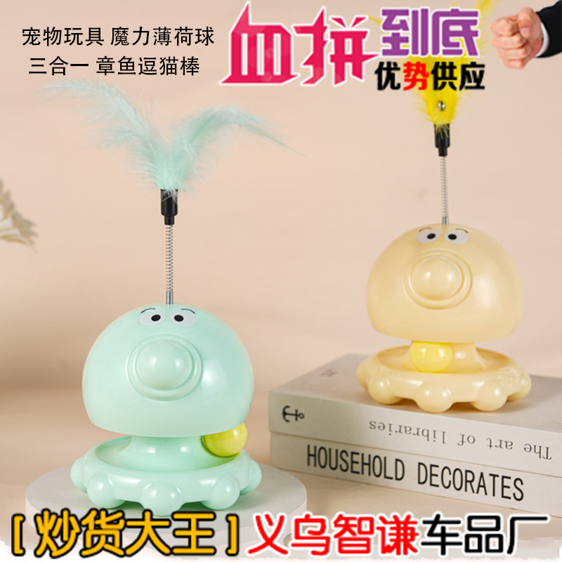 新しいスリーインワンタコ猫面白いスティックベルフェザー自己楽しいミントボール猫面白いおもちゃターンテーブルペットおもちゃ工場
