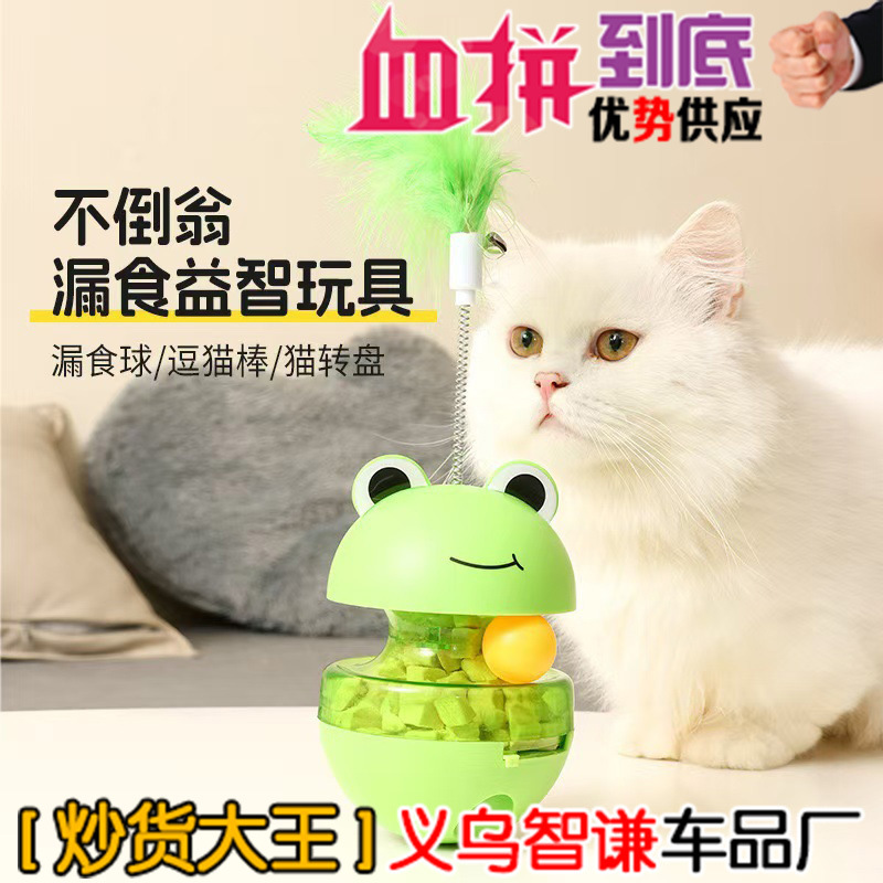 面白い猫のおもちゃ、退屈を和らげる、面白い猫スティック、猫ターンテーブルボール、カエルタンブラー、調節可能な教育用餌漏れボール、卸売