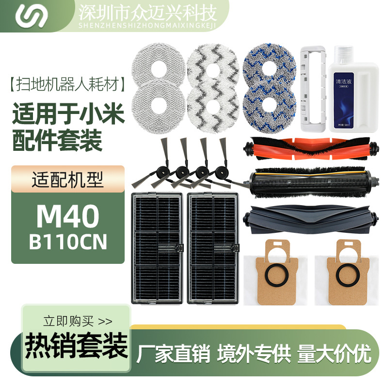 Mijia M40S 掃除およびモップマシンアクセサリー、メインローラーブラシ、三角サイドブラシ、雑巾、フィルター、綿洗浄液、消耗品に適しています。