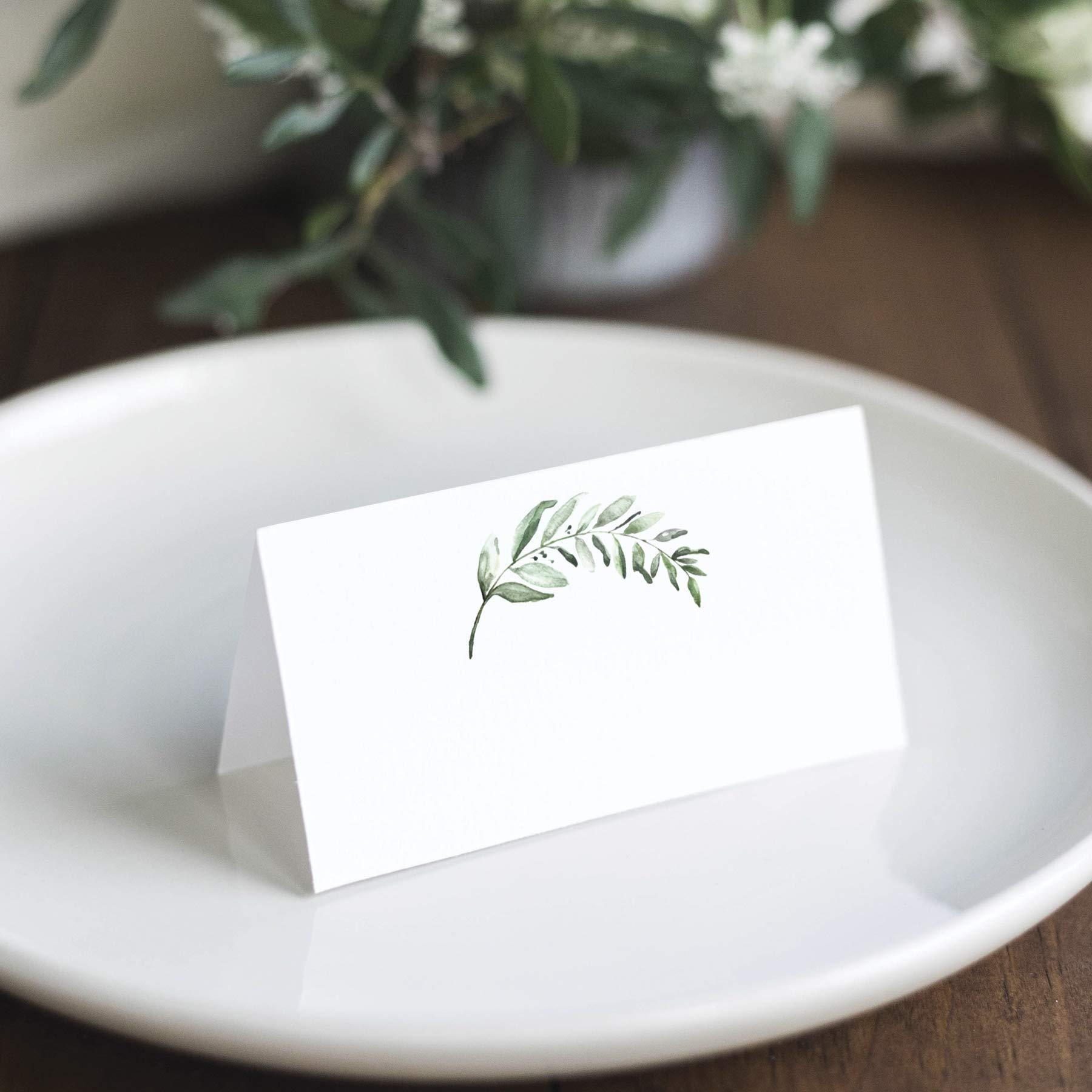 国境を越えた卸売り緑葉水彩結婚式ディナーイベント座席折りカードイベント装飾カードは字を書くことができる