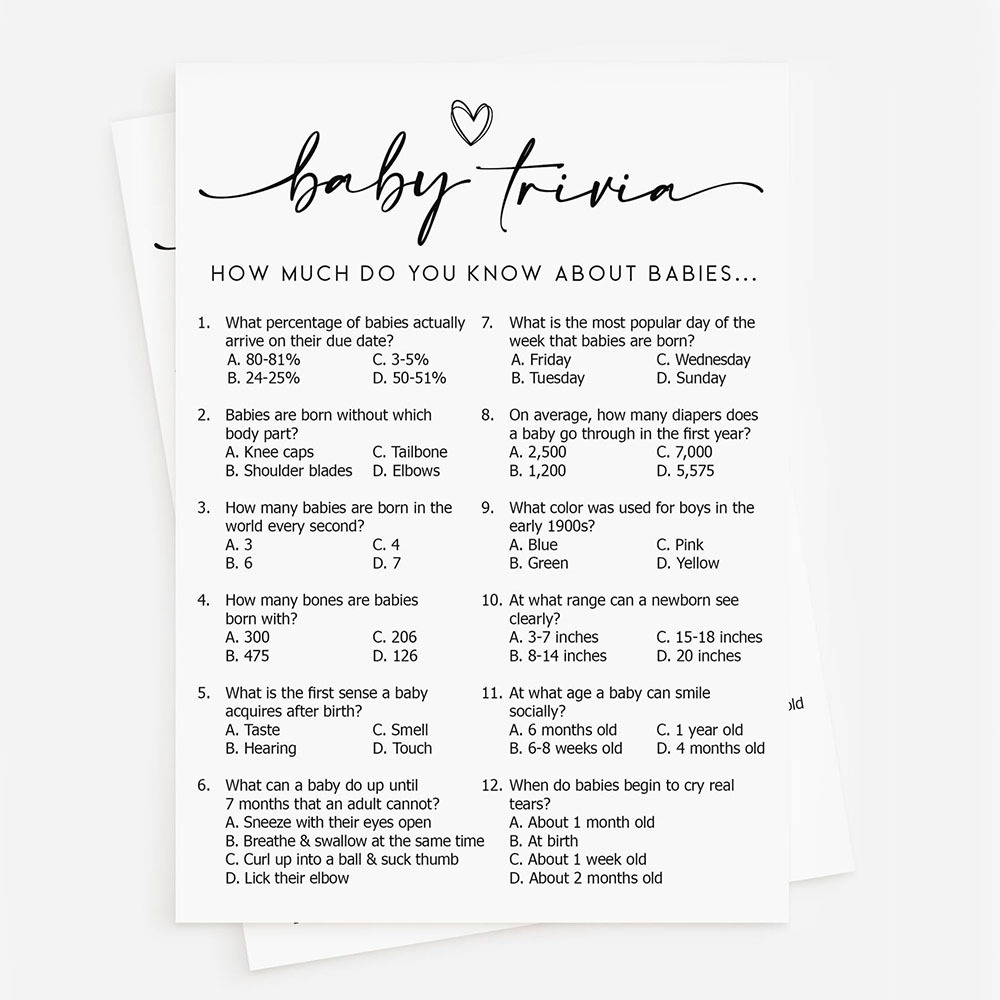 50枚/パック12.5*17.5cmベビートリビアゲームカード面白いベビーシャワーゲームアクティビティカード
