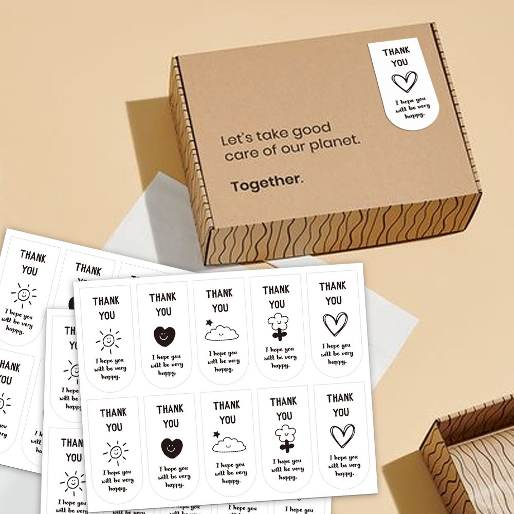 100枚/かわいい表情の長方形のシールを包むギフトボックスには、ファストフードの出前包装感謝シールを貼る