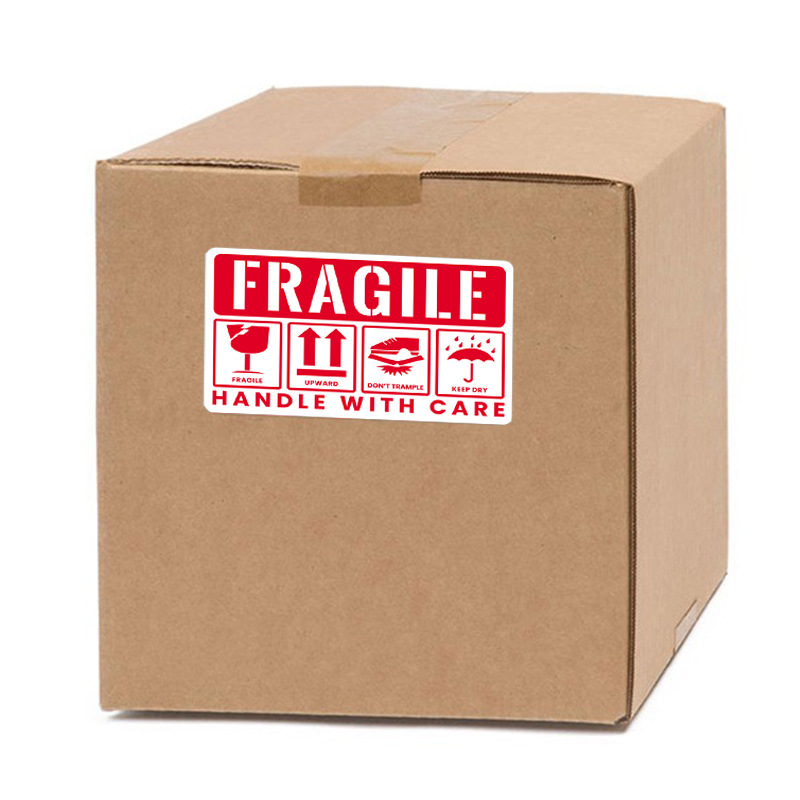 50貼り/赤い壊れやすい警告シール紙包装ステッカーありがとうシール曲げ禁止