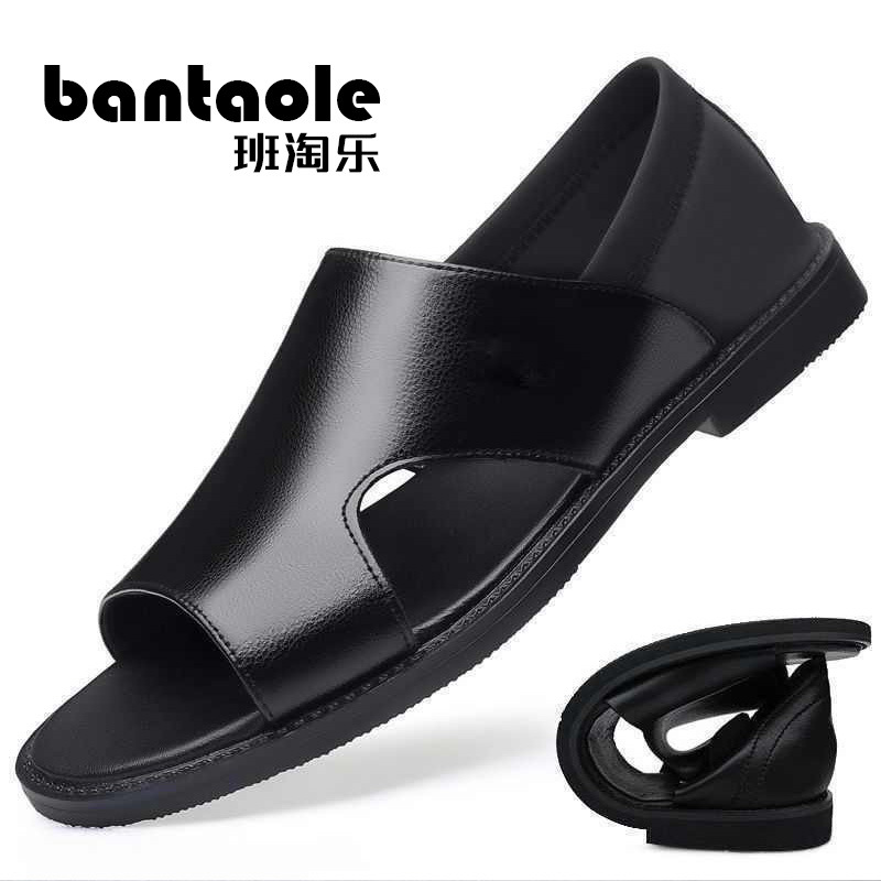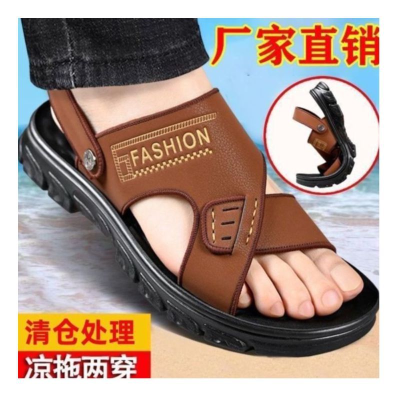 サンダル男性2025新型革の厚い底の砂浜の夏の外はお父さんの滑り止めの耐摩耗性両用のサンダルを着ます。