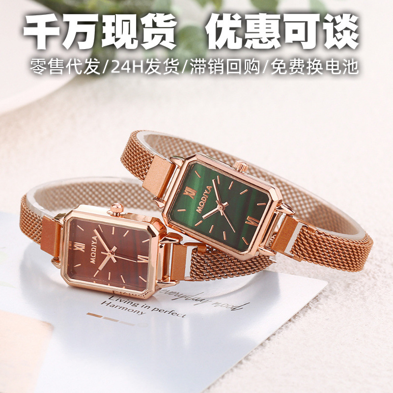 スポット小さな正方形の時計卸売インターネット有名人レトロスクエアピーコックグリーンミラノメッシュベルト装飾グリーン時計女性のハイエンド