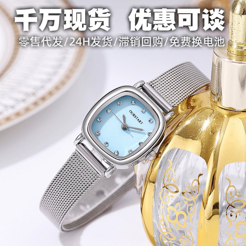 スポットメーカースクエアレディース腕時計女性卸売ファッションラインストーン気質クォーツメッシュベルト学生腕時計レディース腕時計