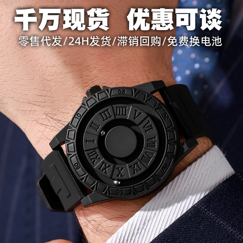 新款创意黑科技手表男批发个性磁力悬浮滚珠硅胶无镜面男士手表