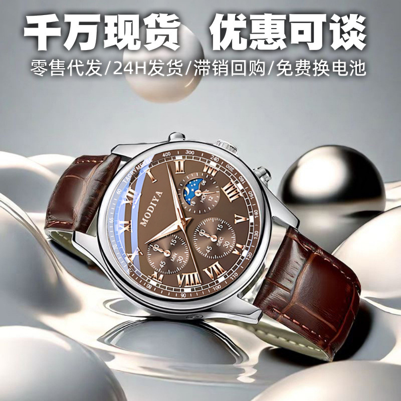 ブランドファッションメンズ腕時計卸売防水クロスボーダーベルト腕時計メンズハイエンドカレンダークォーツメンズ腕時計