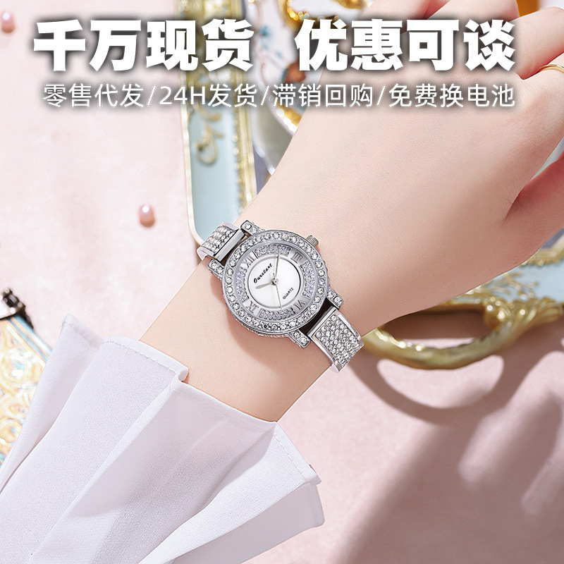 腕時計の女性の引き出し式のブレスレットの卸売りの外国貿易の越境する高級感のファッションはダイヤモンドの細い帯のアクセサリーの腕時計の女性の時計を入れます。