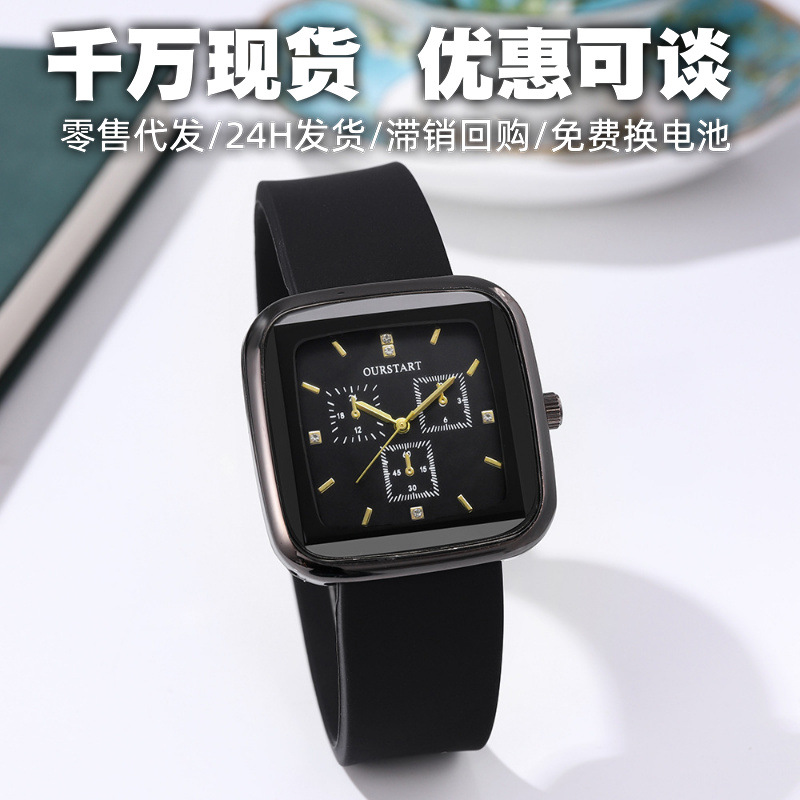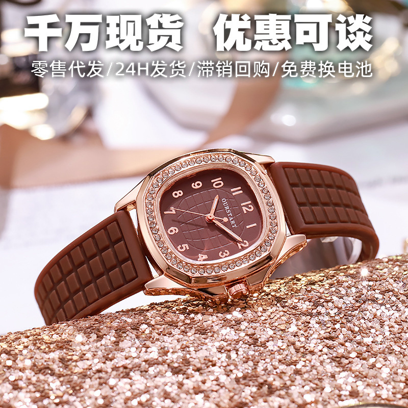 工場直販の抖音で話題のレディース腕時計、韓国風ファッション、装飾的な四角いラインストーン、シリコン製クォーツ腕時計