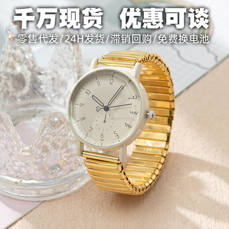レディース腕时计ファッションカジュアル石英スプリング弾性ベルト学生时计単眼数字百合计腕时计女