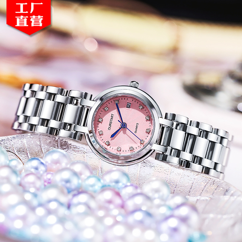 加工カスタム生中継帯商品シンプル水ドリルカレンダー気質鋼帯女表貝殻面心月腕時計女