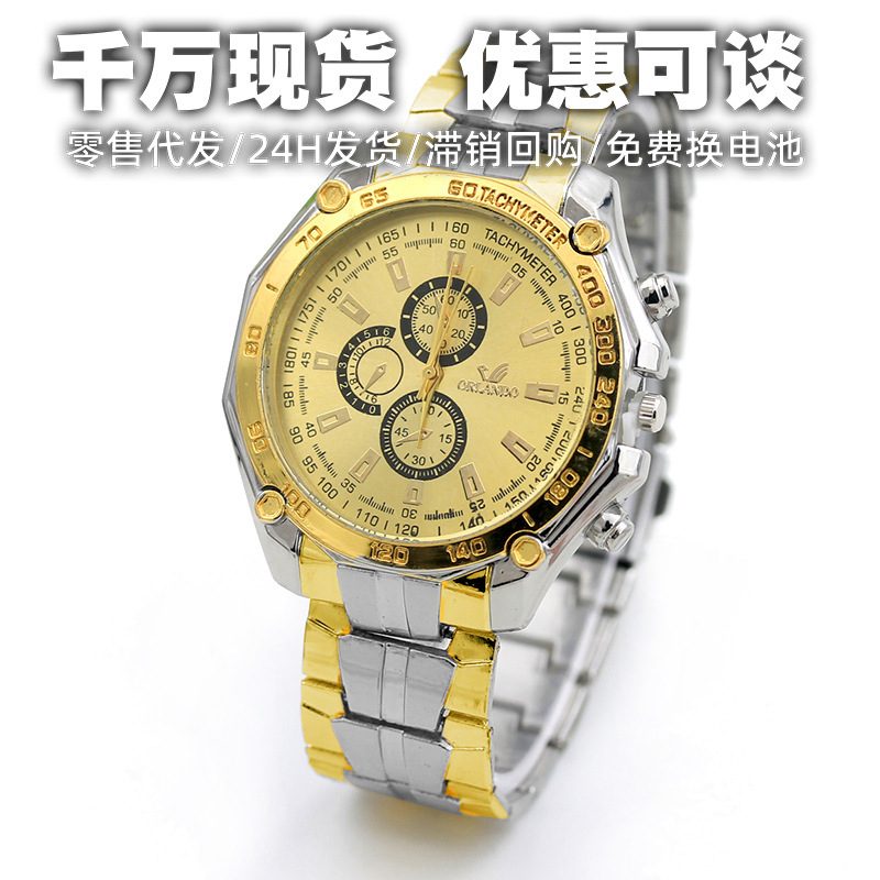 オレン多間金男性腕時計合金鋼帯クロスボーダーwatch卸売りカジュアルクォーツ時計男