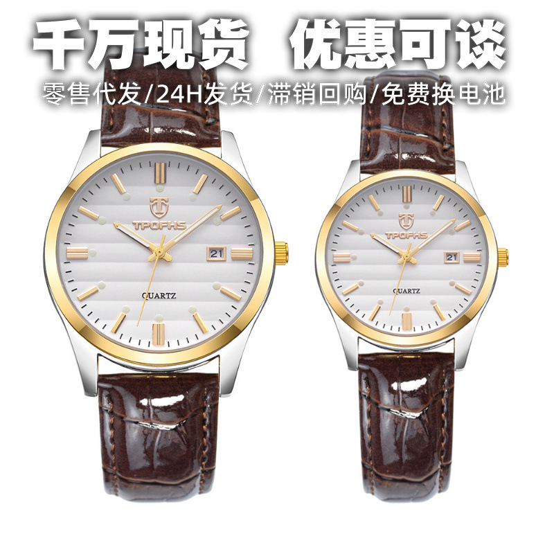 TPOFHS正規品新しいバンドカレンダー防水クォーツ時計卸売装飾夜光ベルト腕時計カップル時計