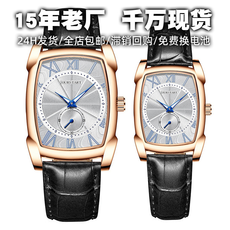 新型メーカー直営ベルトカップル時計卸売り二針半創意モデル酒桶夜光石英カップル腕時計