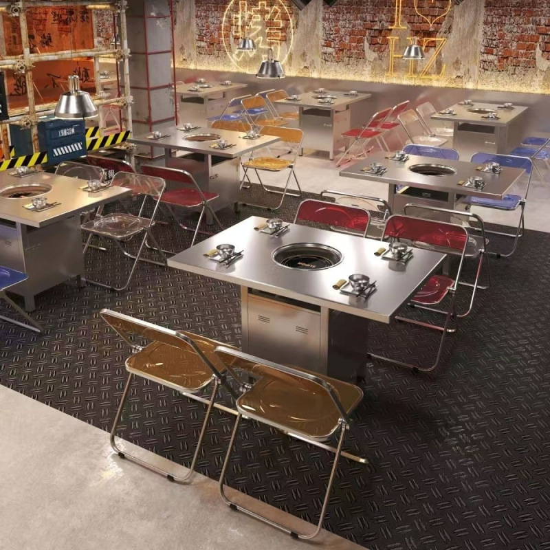 工業風韓国式ステンレス焼肉ドラム缶テーブル無煙電気炭焼き一体テーブルバーベキュー店テーブル火鍋テーブル