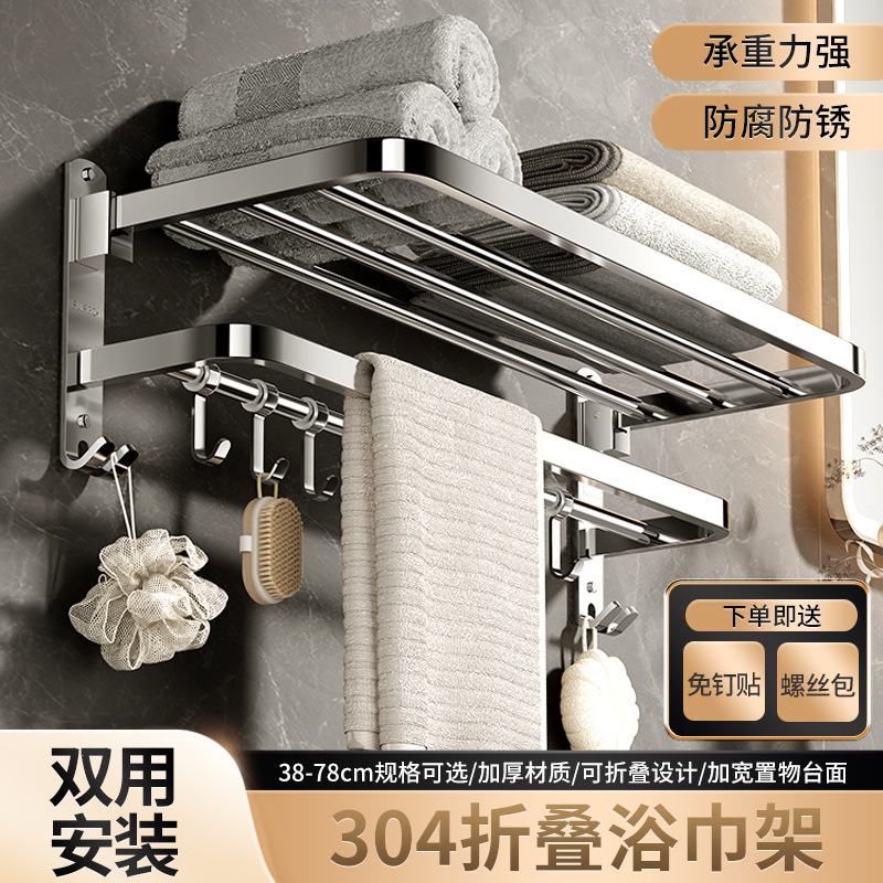 厚手304ステンレス製タオル掛け穴なしトイレタオル掛け浴室棚トイレタオル掛け