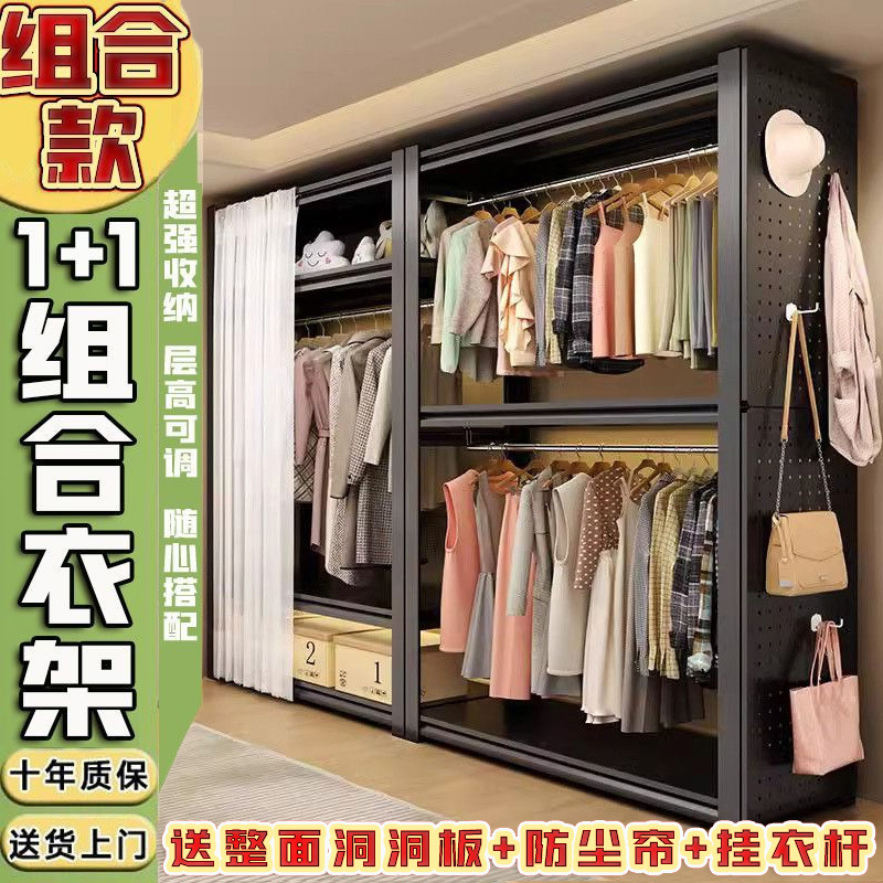 寝室の簡易ハンガー棚は、穴板のカーテンの鋼製フード棚を持って部屋を借りる簡易たんすを持っている