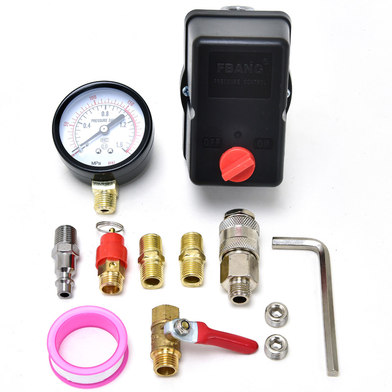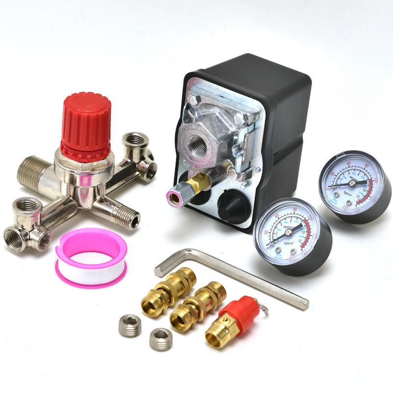 エアコンプレッサ空気ポンプ部品気圧圧力コントローラスイッチアセンブリ横型ノブ4穴12点セット国境を越えた製品