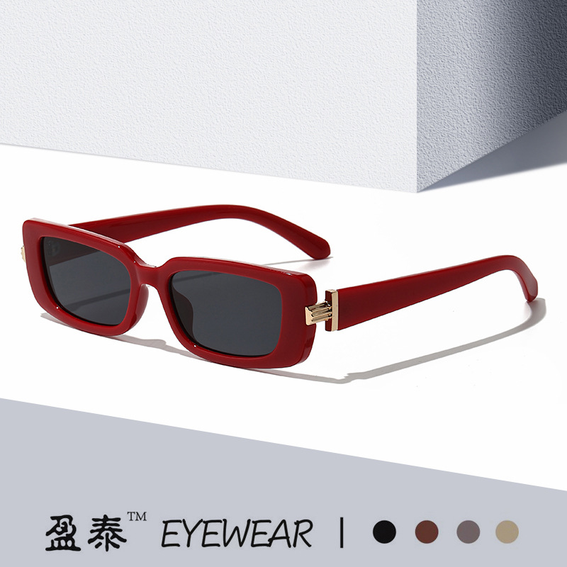 新型クロスボーダーのサングラスの女性欧米の個性は色のネットの赤い街にぶつかってinsのメガネの四角形のモダンなサングラスをたたきます。