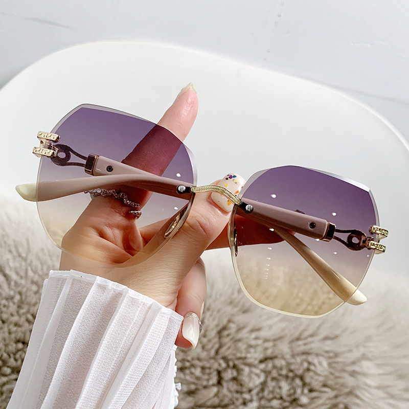 新品フレームレス多角形サングラスレディース高级感紫外线防止メガネおしゃれ大きい颜见せ痩せすっぴんサングラス