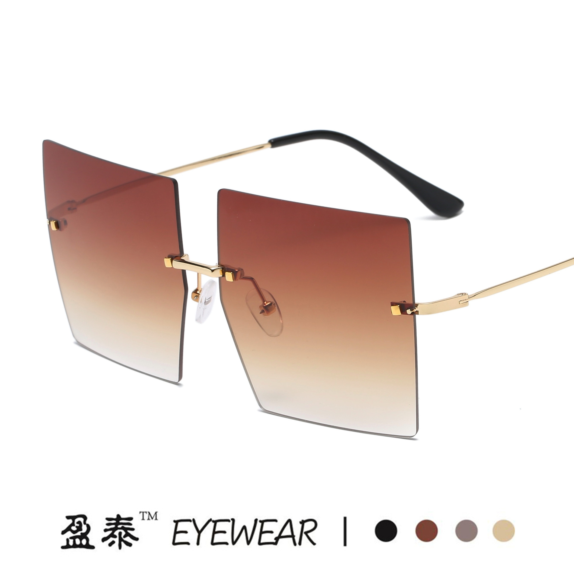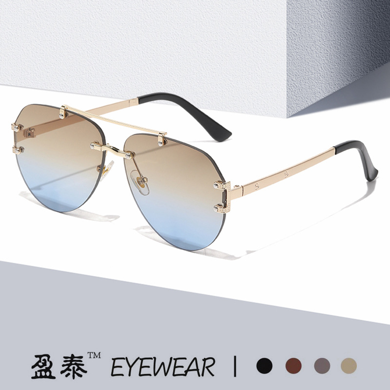 新型欧米ファッション双梁サングラス金属カット縁無枠ガマ鏡街拍グラデーション色サングラス