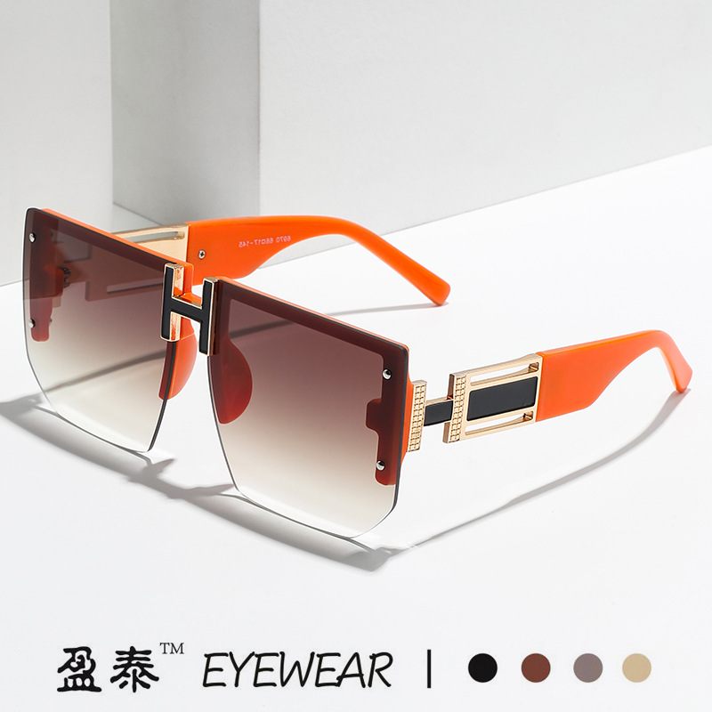 新型h家モダンレトロメガネ男枠なしファッションサングラス個性大枠ロック風ファッションサングラス