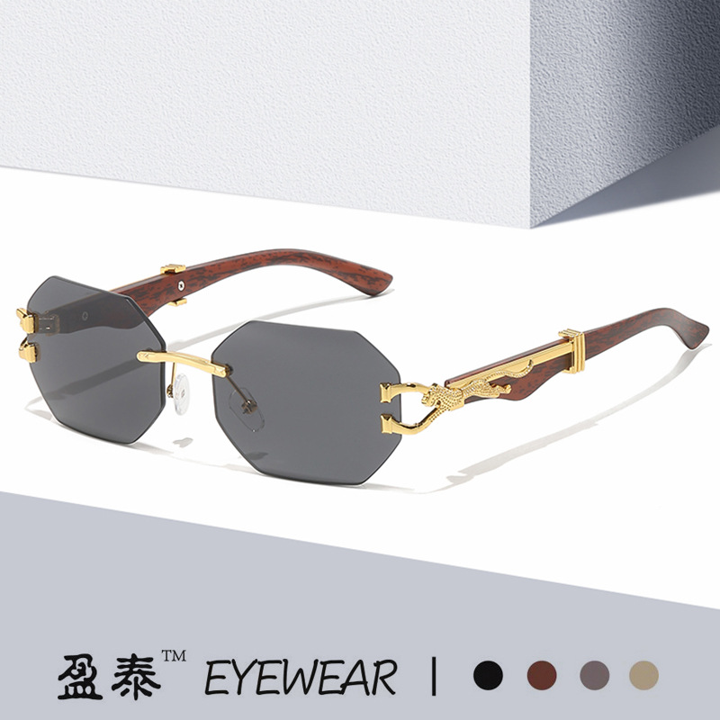 新型レトロ木目豹の鏡脚サングラス男性欧米の方枠運転チーター装飾サングラスクロスボーダー卸売り