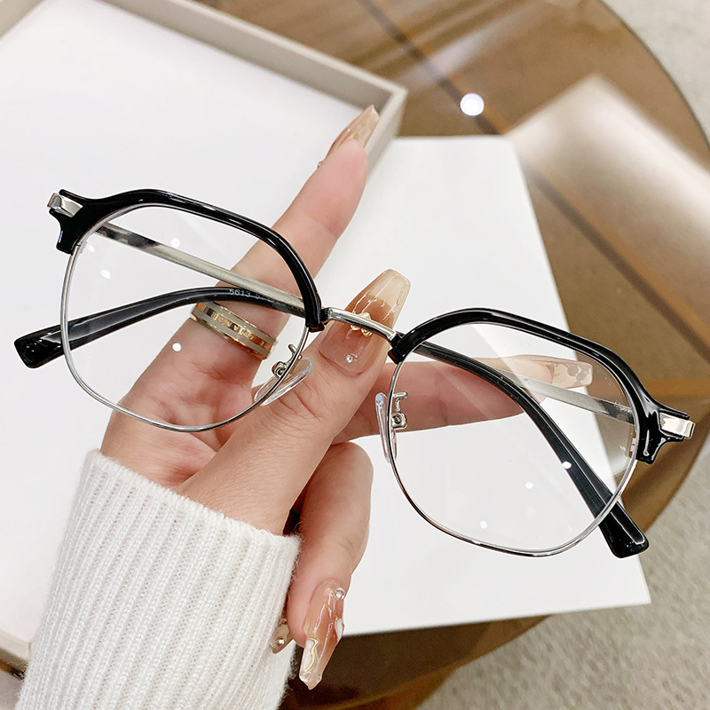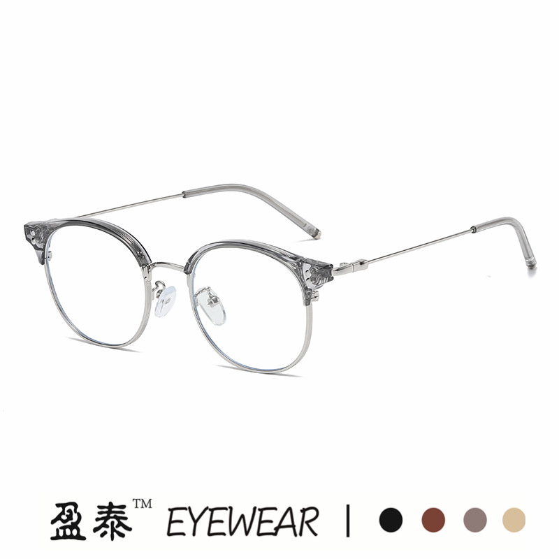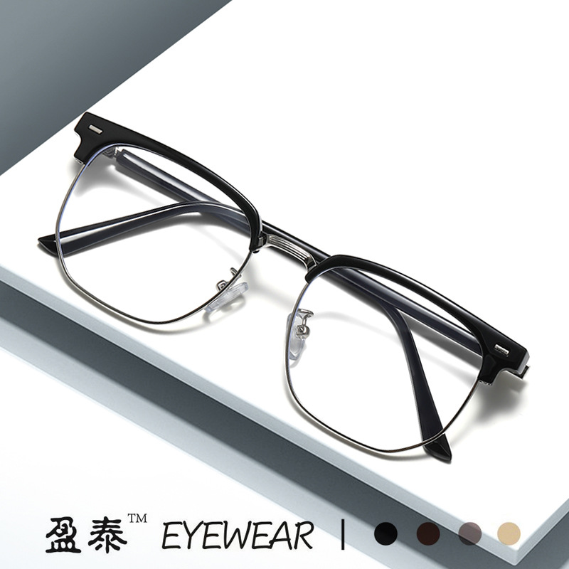 2023新品insメタルハーフフレームフラットミラー個性眉毛すっぴんinsアンチブルーライト放射線近視眼鏡フレーム