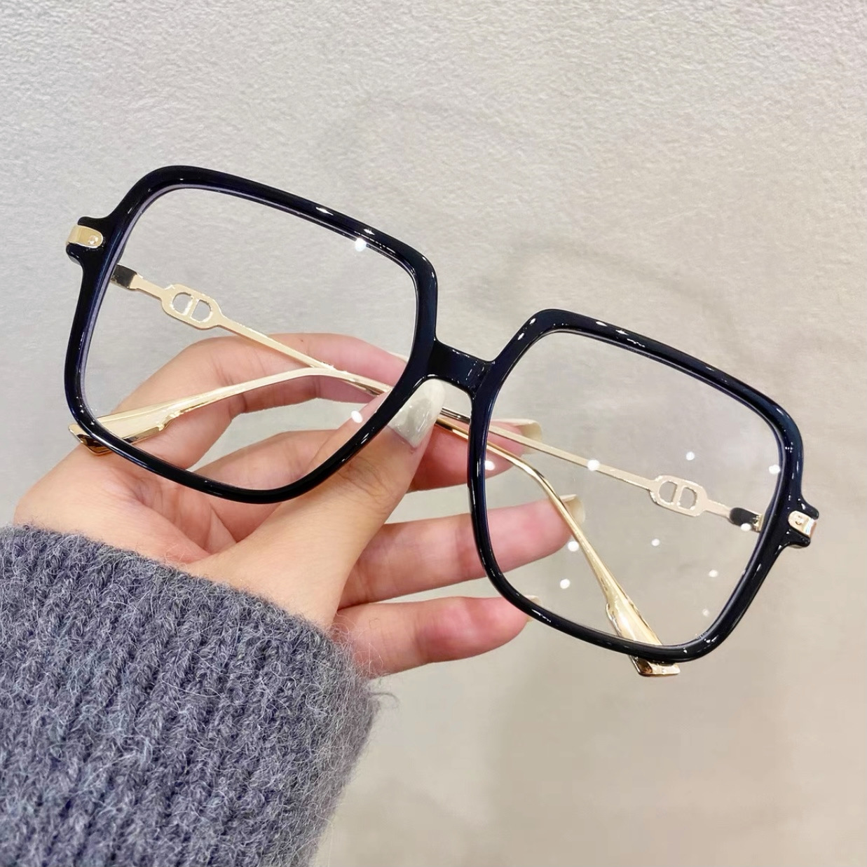 新しいd家の青い光のメガネの大きい枠のネットの赤い金の街はメガネの枠の韓国版のすっぴんの文芸の平光の鏡の女性をたたきます