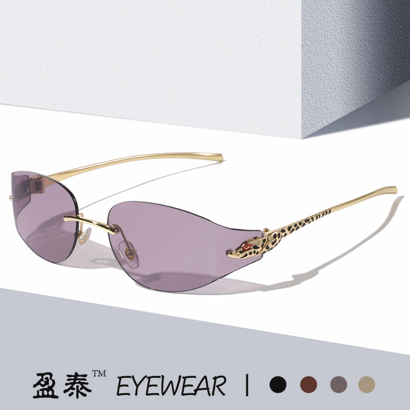 金属のヒョウの頭の装飾のフレームなしのサングラスY2Kの曲面の欧米の個性のファッションの街はサングラスの女性の高級感をたたきます。