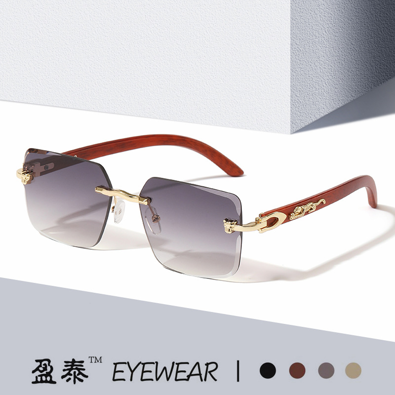 新型ヒョウの頭のサングラス欧米の枠のない潮流の街はサングラスの女性の越境を撮影します。