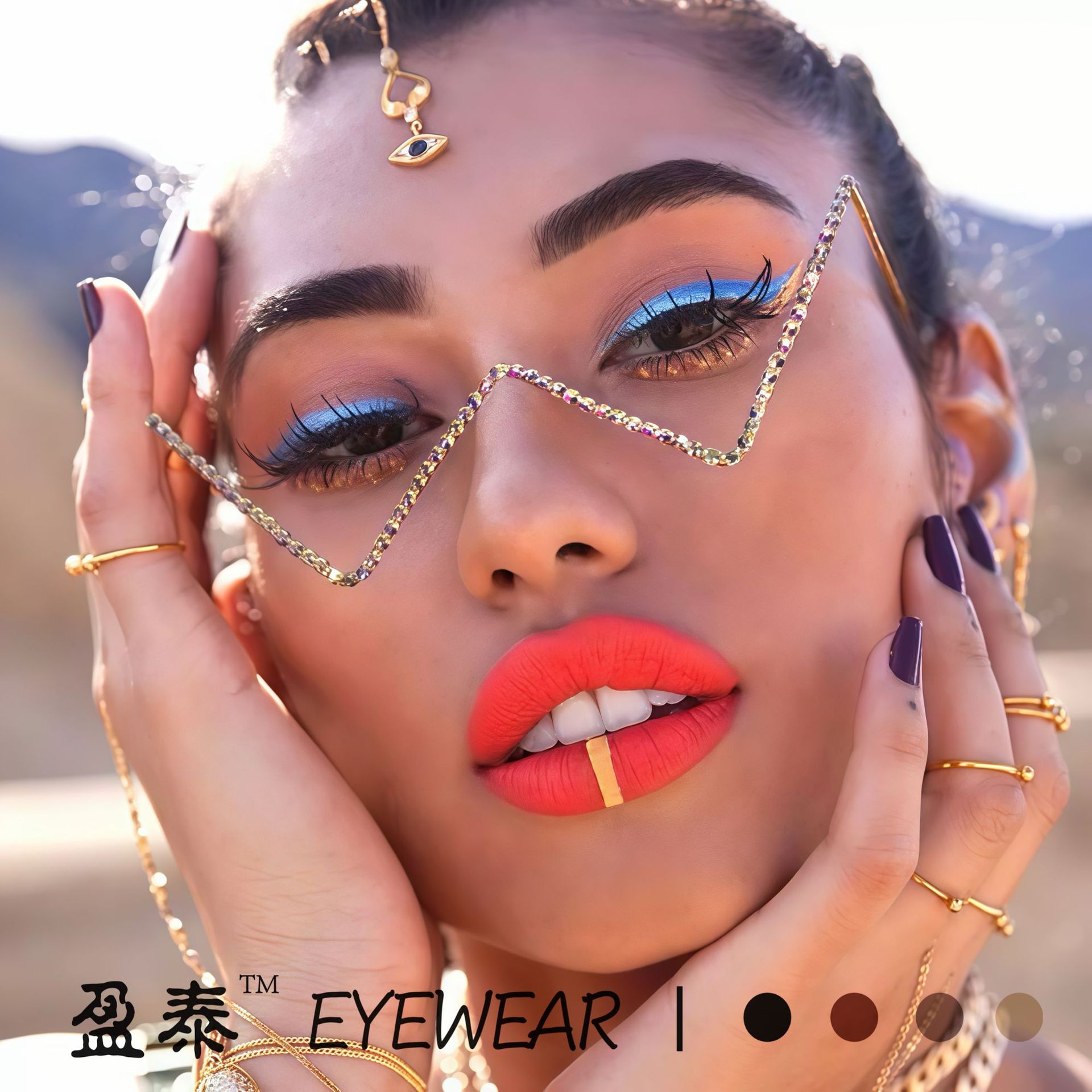 新しいスタイルのフレームレスハーフフレーム、ヨーロッパとアメリカのトレンドの女性用ダイヤモンド装飾メガネフレーム、W型のネットセレブ風インスタ映えメガネフレーム